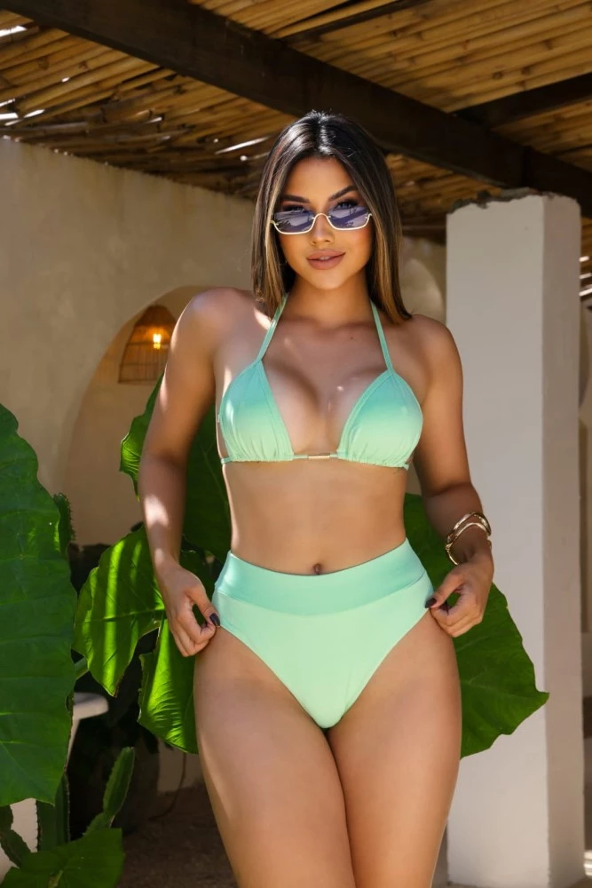 Vestido feminino confeccionado em tecido plano de algodão. A peça tem elásticos embutidos na parte posterior que conferem caimento ajustado ao corpo. O comprimento é midi com uma fenda frontal. O decote tem recorte que valoriza o busto e não possui bojo. As alças são finas com regulagem. O fechamento é posterior por zíper. Tem forro feito do mesmo tecido na parte superior.